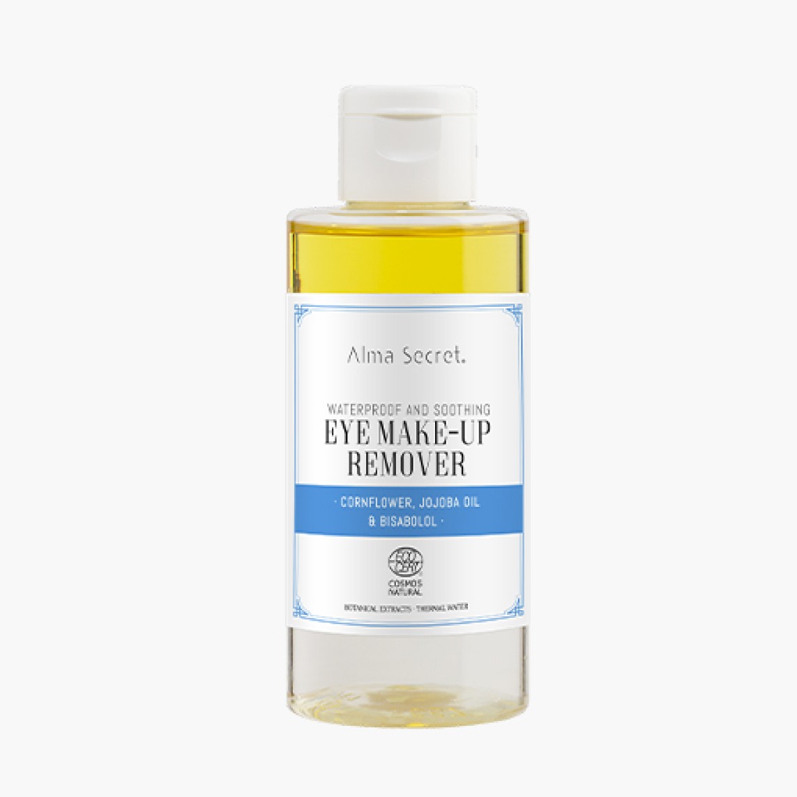 La fórmula del desmaquillante ALMA SECRET se basa en una cuidadosa selección de ingredientes naturales y activos que ofrecen una combinación de limpieza eficaz y propiedades calmantes y nutritivas. Entre los ingredientes clave se encuentran extractos botánicos de manzanilla, caléndula y malva, conocidos por sus propiedades calmantes, antiinflamatorias y descongestivas. Estos extractos son infusionados en agua termal y de aciano, que aportan propiedades hidratantes y calmantes adicionales. Estos elementos contribuyen a la reducción de la inflamación y la irritación en la zona ocular.