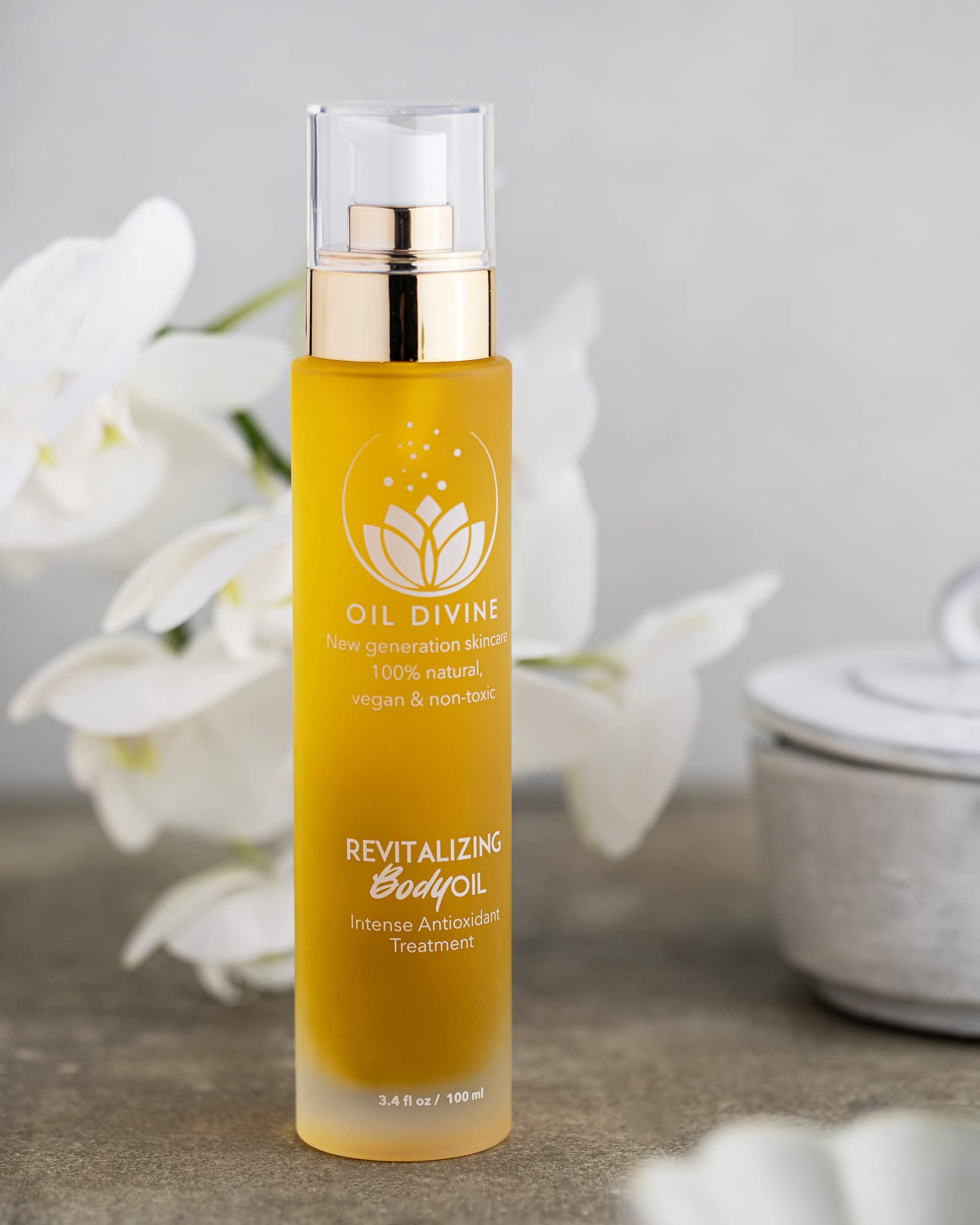 El aceite corporal revitalizante se comercializa en un frasco de 100 ml, con una etiqueta que indica claramente la composición del producto y las precauciones de uso. El envase está diseñado para proteger el producto de la luz y de la humedad, conservando así sus propiedades durante un periodo prolongado.